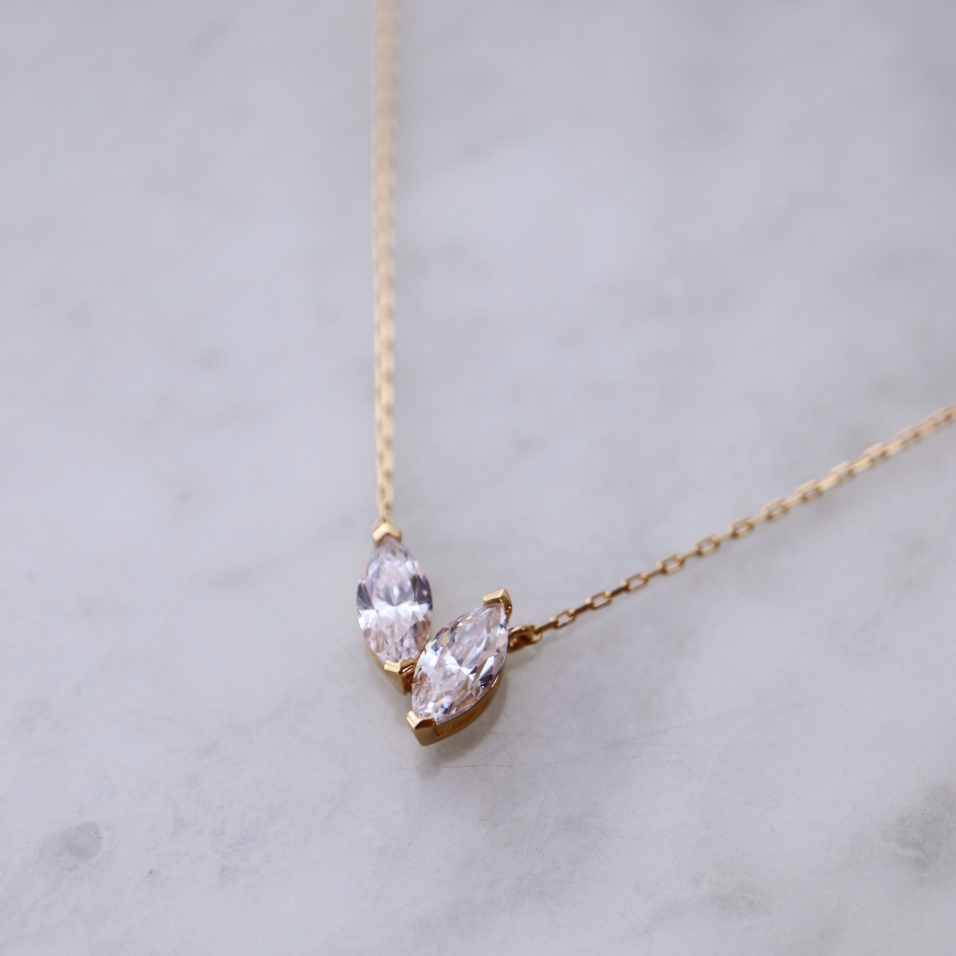 ふたつのマーキスカットが、さりげなく寄り添うアシンメトリーデザインのネックレス。