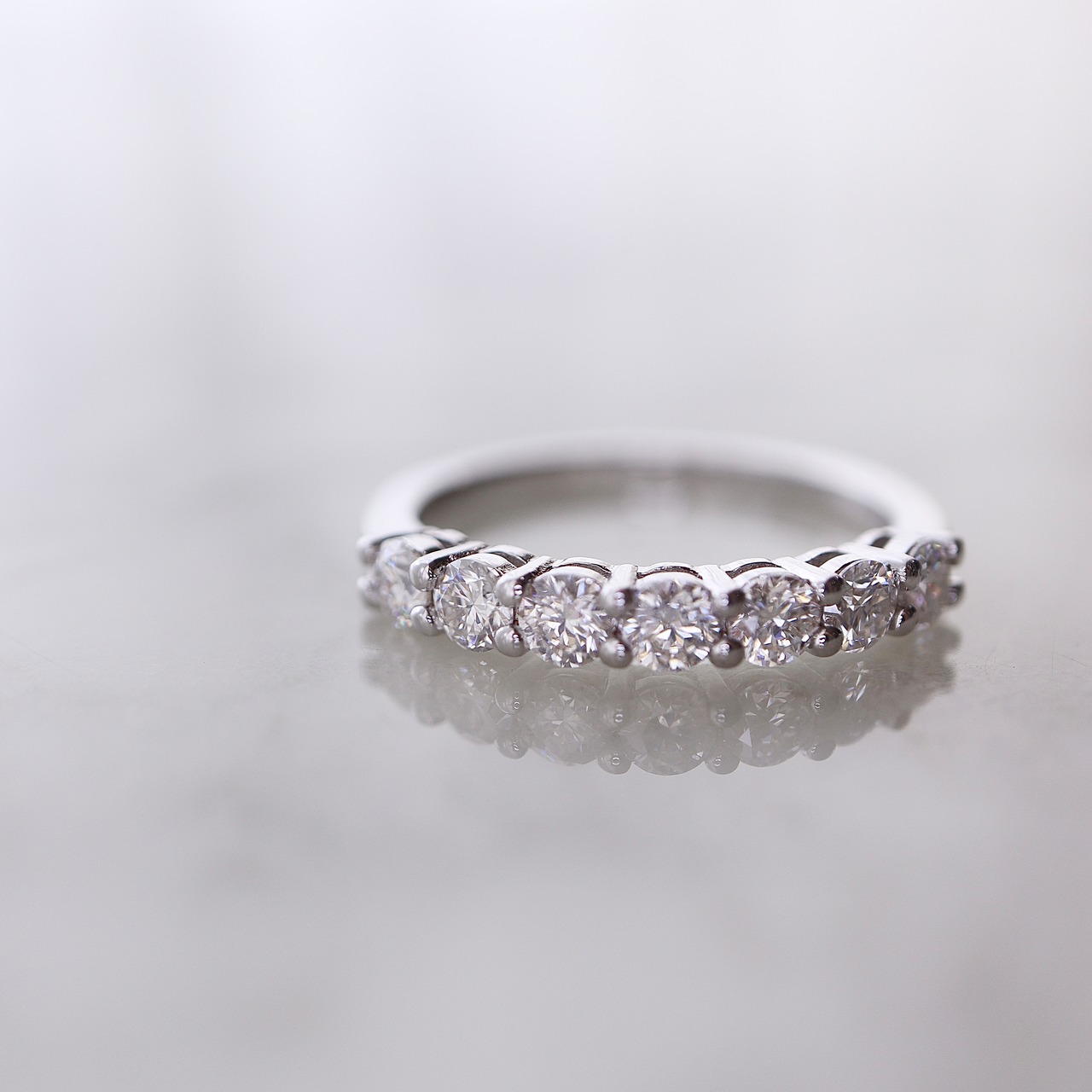 ひと粒ひと粒が繊細に煌めく、total0.7ctのハーフエタニティリング。