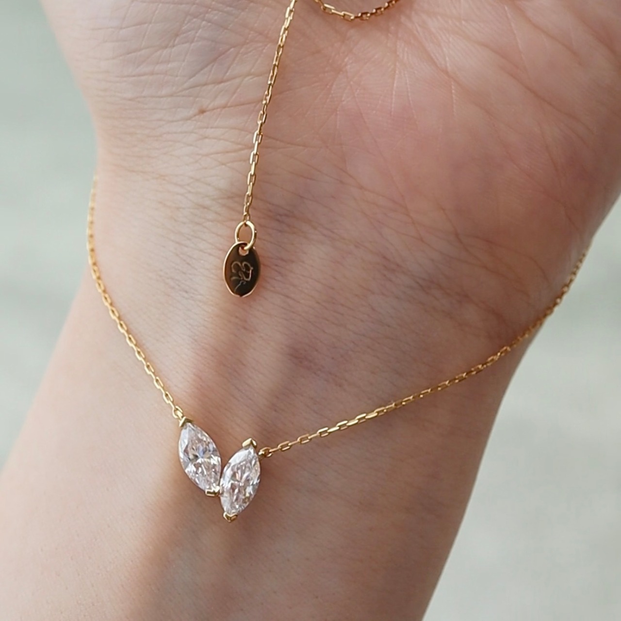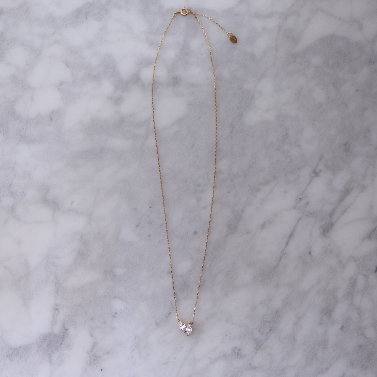 ふたつのマーキスカットが、さりげなく寄り添うアシンメトリーデザインのネックレス。