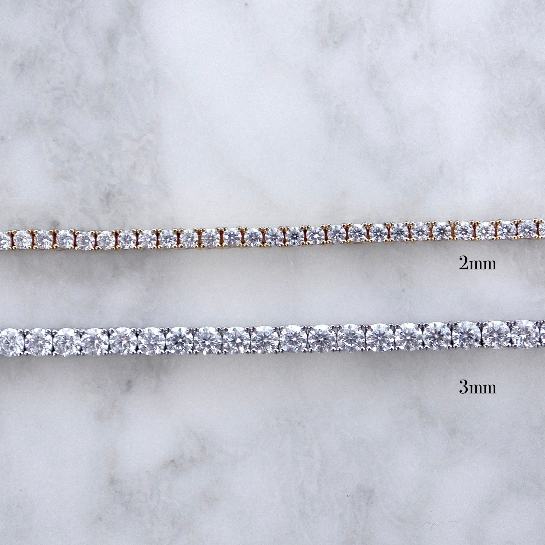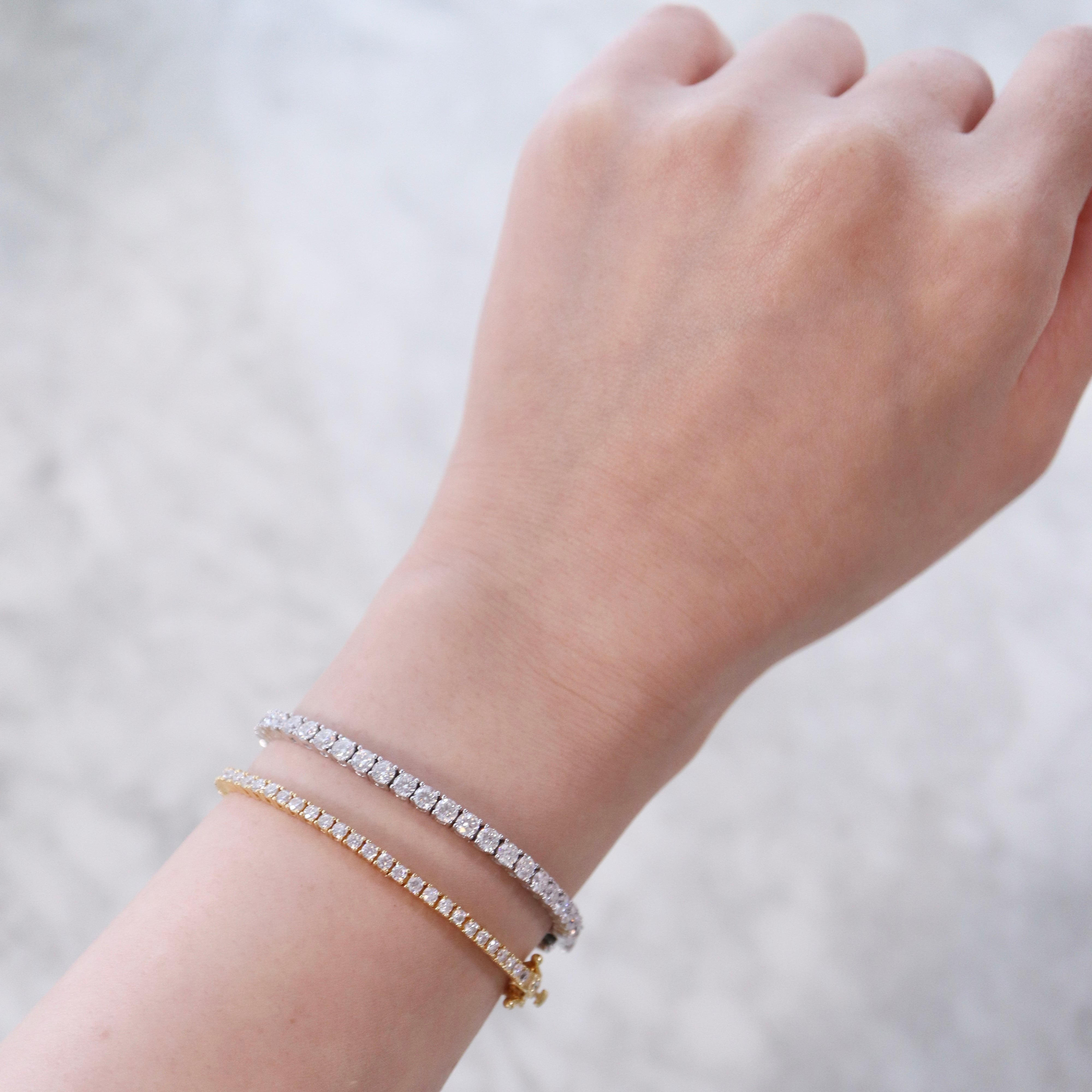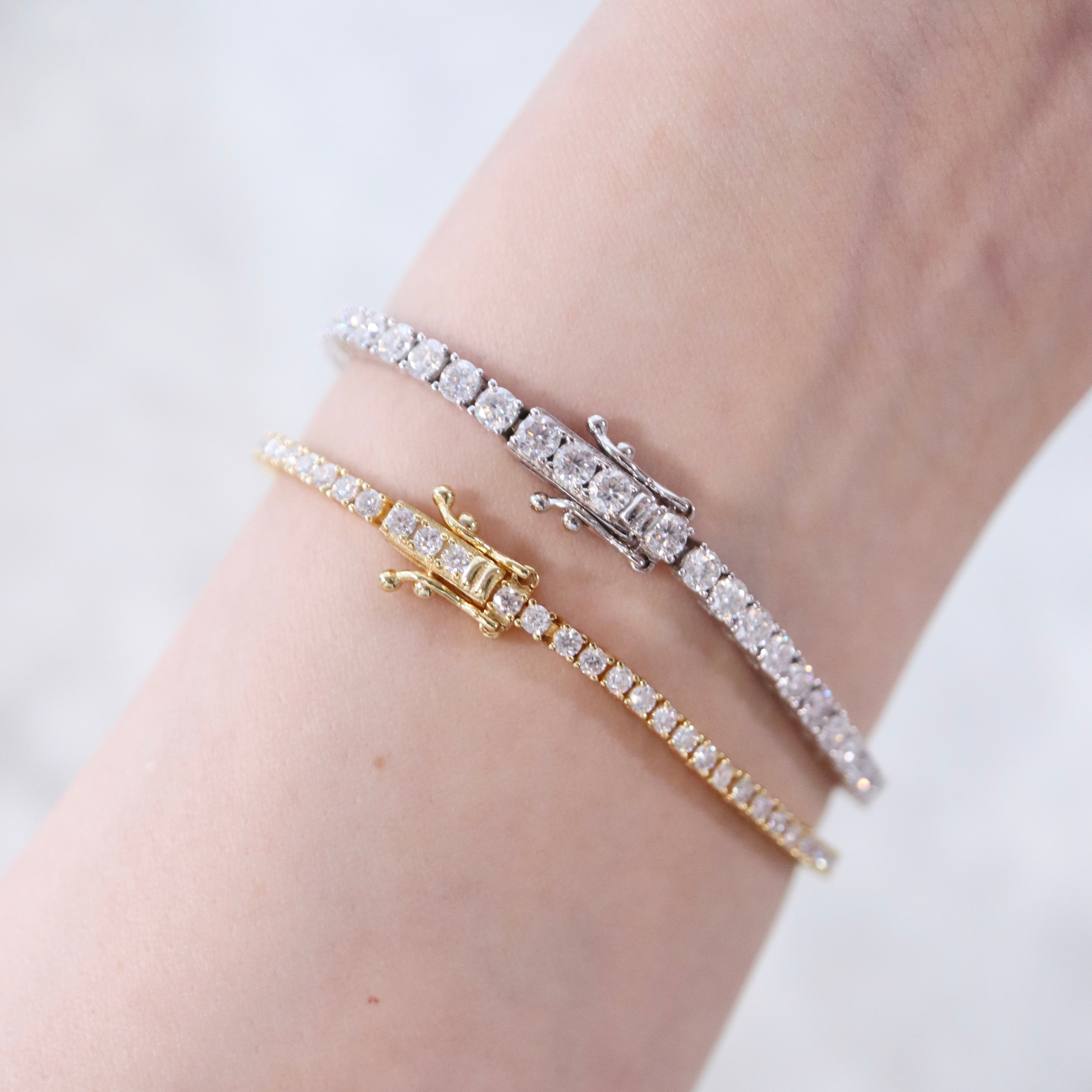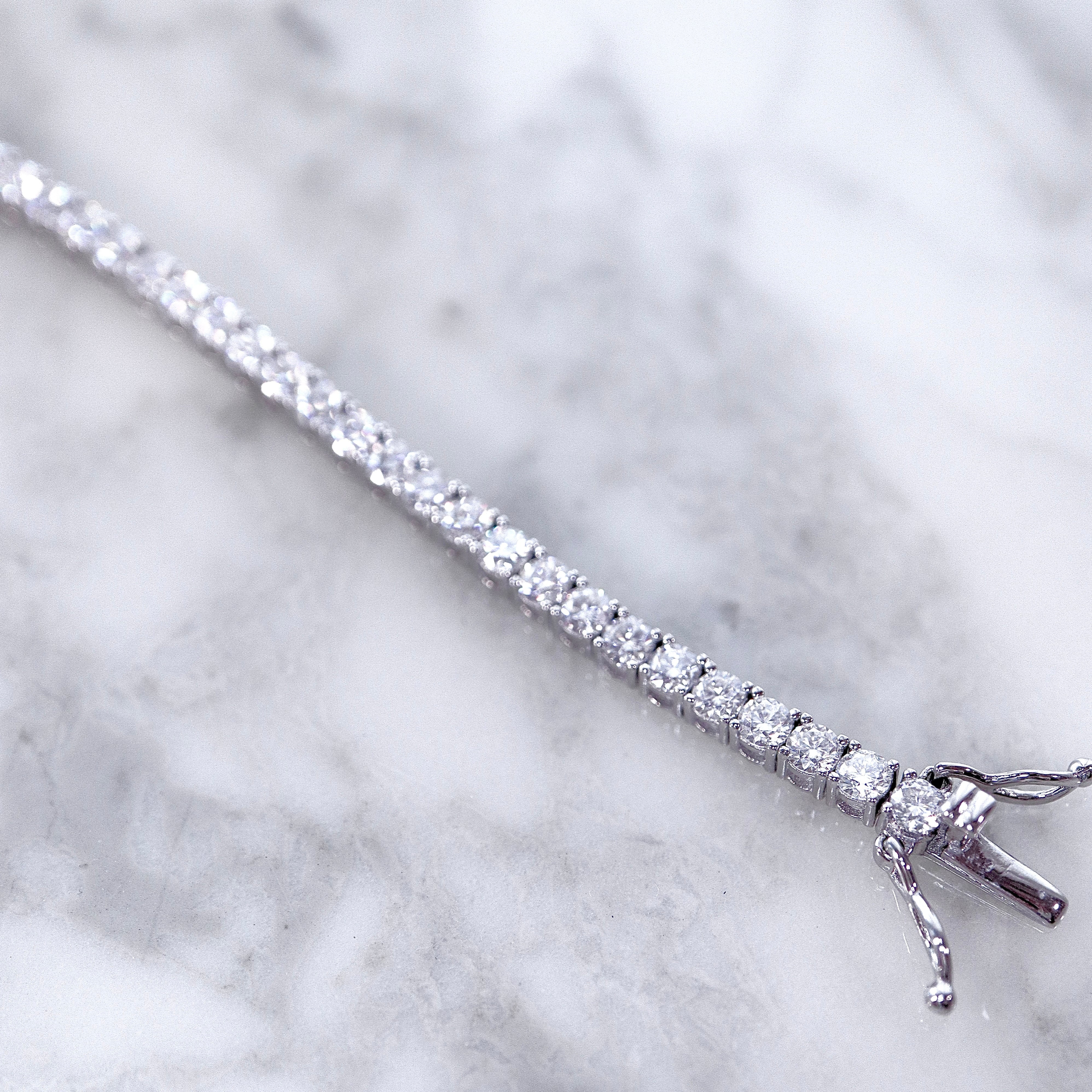 一粒一粒が美しく連なる、3mmのテニスブレスレット。