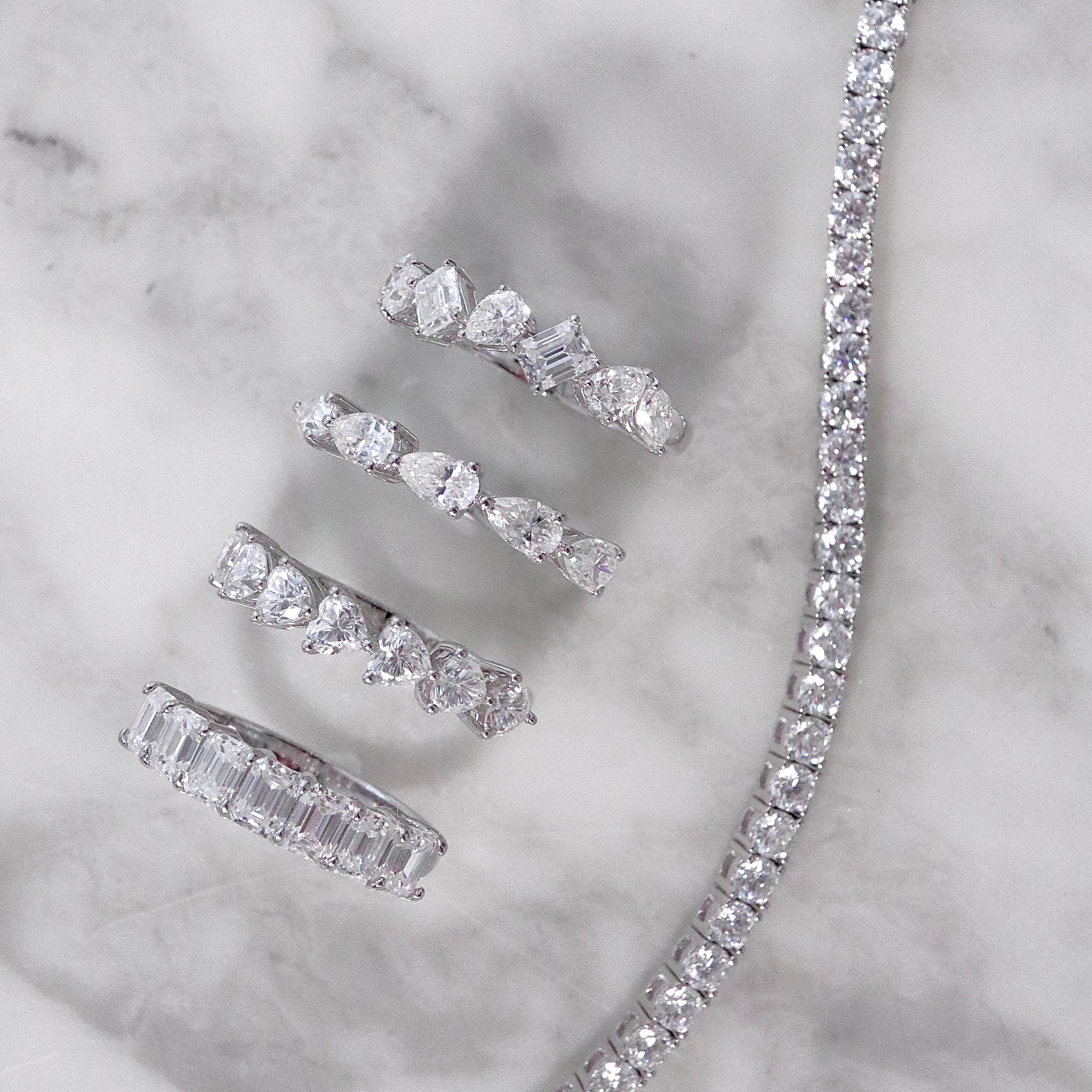 整然と並ぶモアサナイトが、手元に洗練された輝きをもたらします。