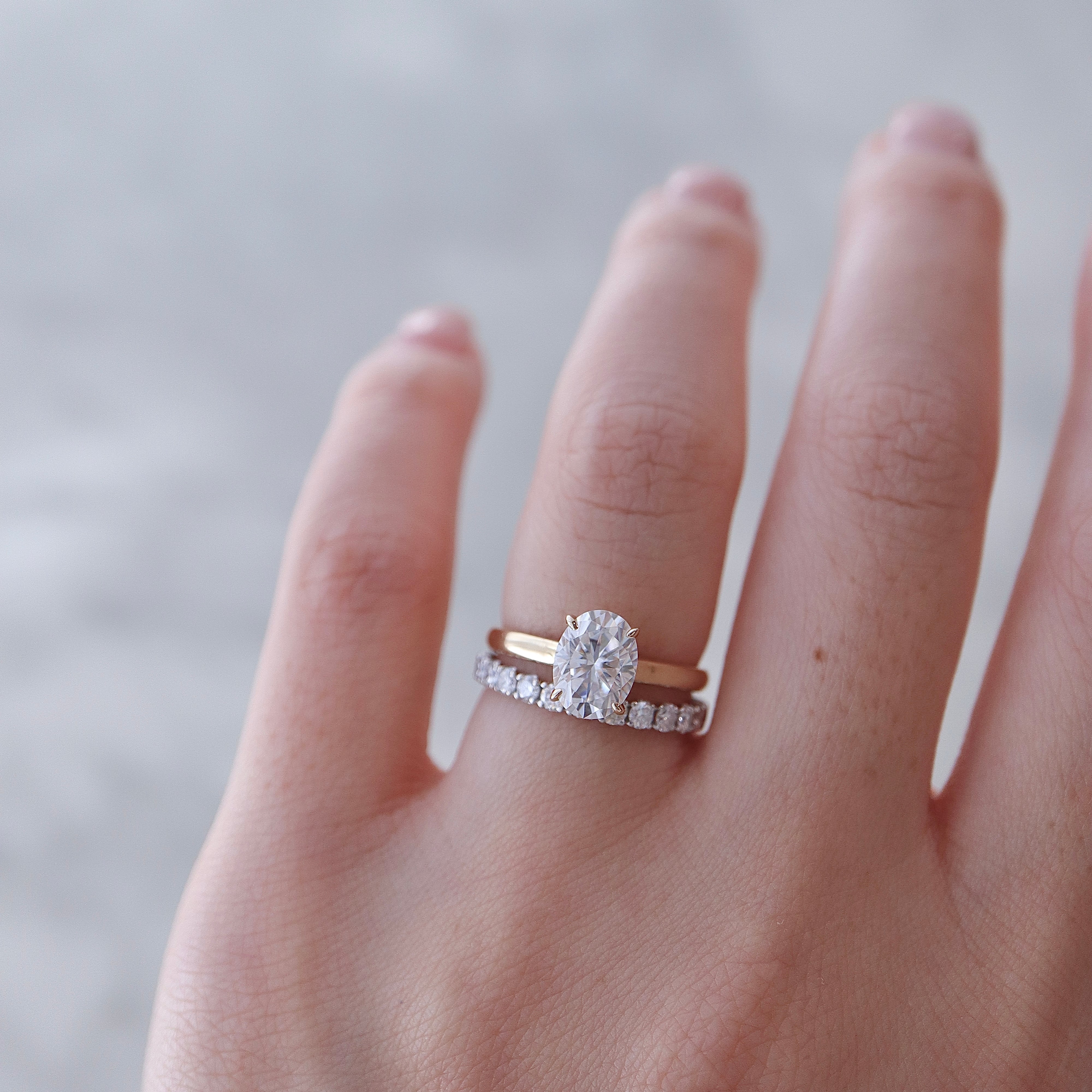 一石一石丁寧にセッティングされたモアサナイトが、どの角度から見ても上品な光を放ちます。